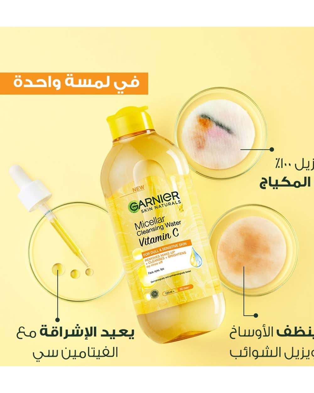 غارنييه مزيل مكياج ماء ميسيلار لتفتيح البشرة مع فيتامين سي - 400 مل