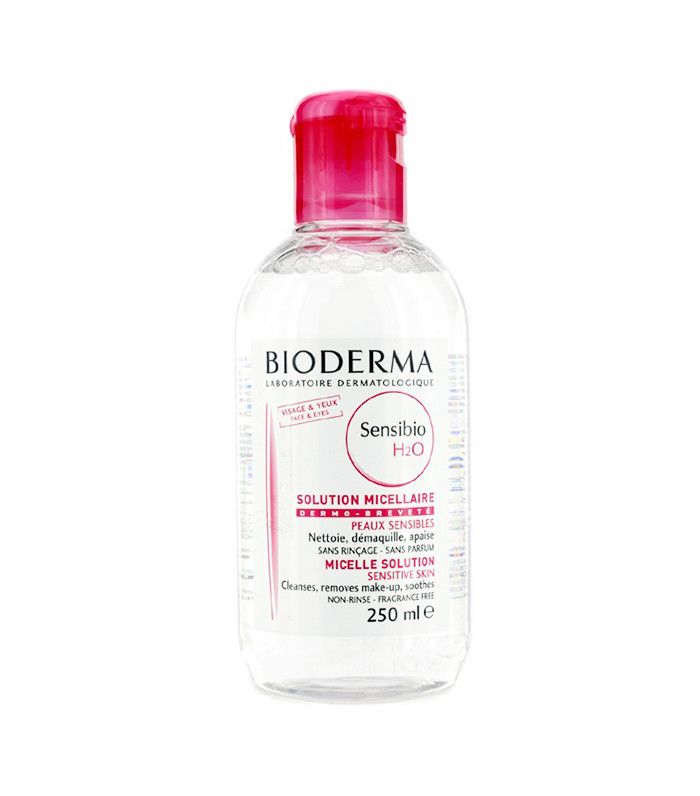 ماء ميسيلار سينسيبيو إتش تو أو (Sensibio H2O) من بيوديرما، وهو منظف ومزيل للمكياج مصمم خصيصاً للبشرة الحساسة.